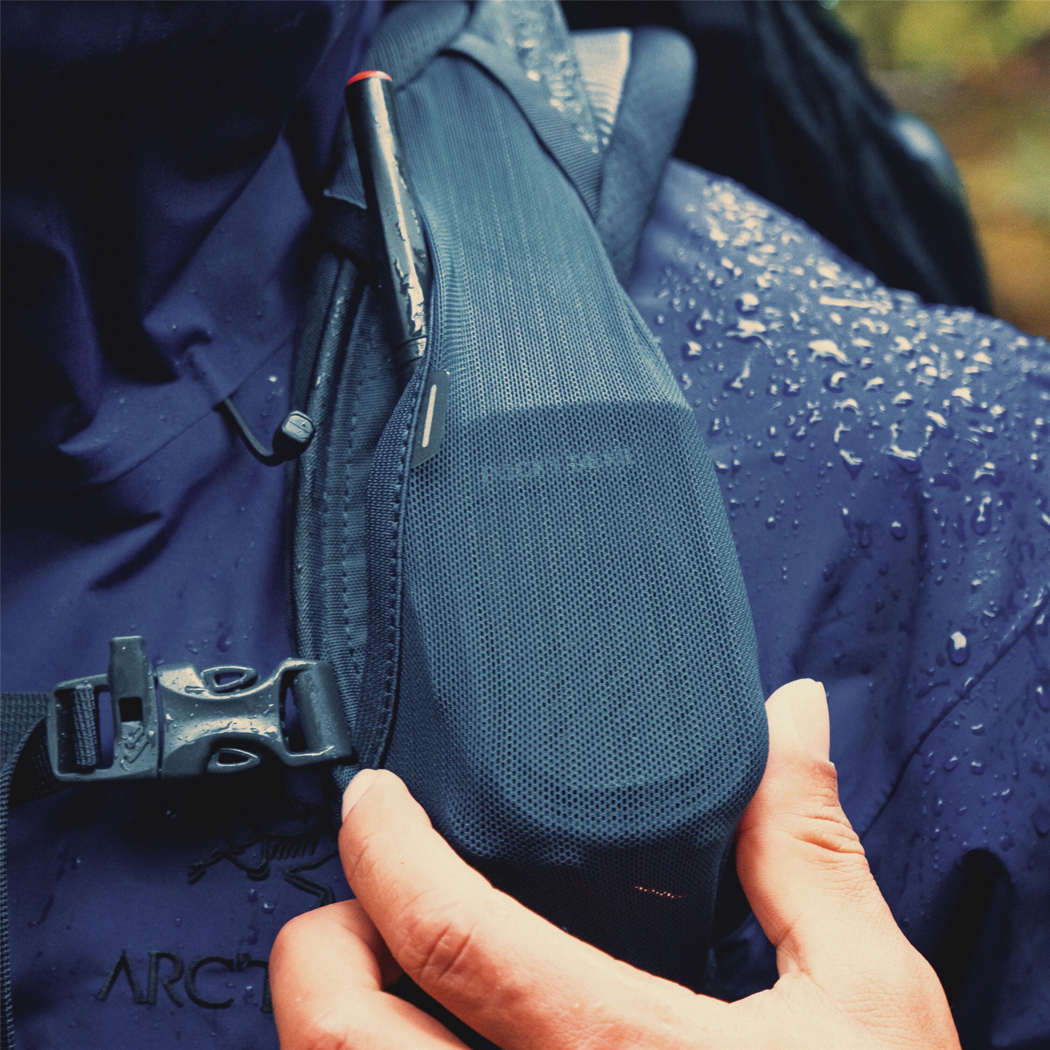 .側邊水瓶網袋,方便行進間單手拿取水瓶,不使用時可將網袋收起