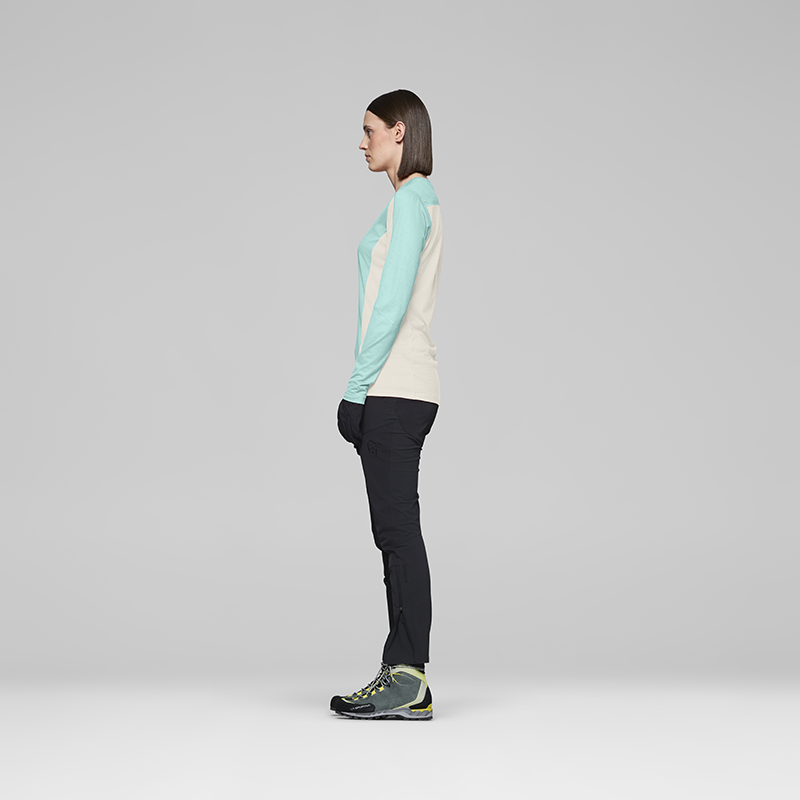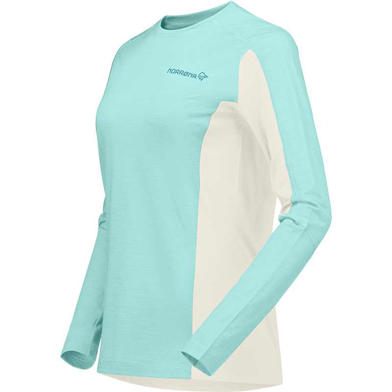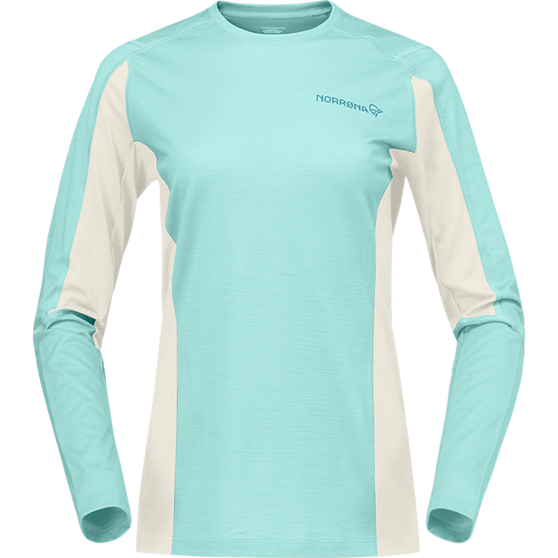 falketind equaliserUll 圓領長袖上衣 女 水霧藍/細語白-Norrona,提供一流的戶外用品,所有商品皆享有一年保固 | 登山補給站