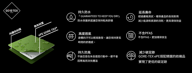 .GORE-TEX ePE 搭配精選的紡織品,實現更低的碳足跡