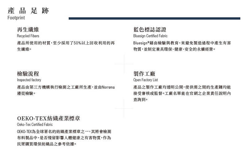 你可以看見Norrona每一個終端細節、面料、工藝不僅一絲不苟,更具備卓越的性能。除此之外,Norrona也強調綠色生產,以降低環境破壞為原則,部分商品採用有機棉與回收材料製造,並盡可能地減少航空運輸、將生態足跡最小化,達到環境的永續發展。