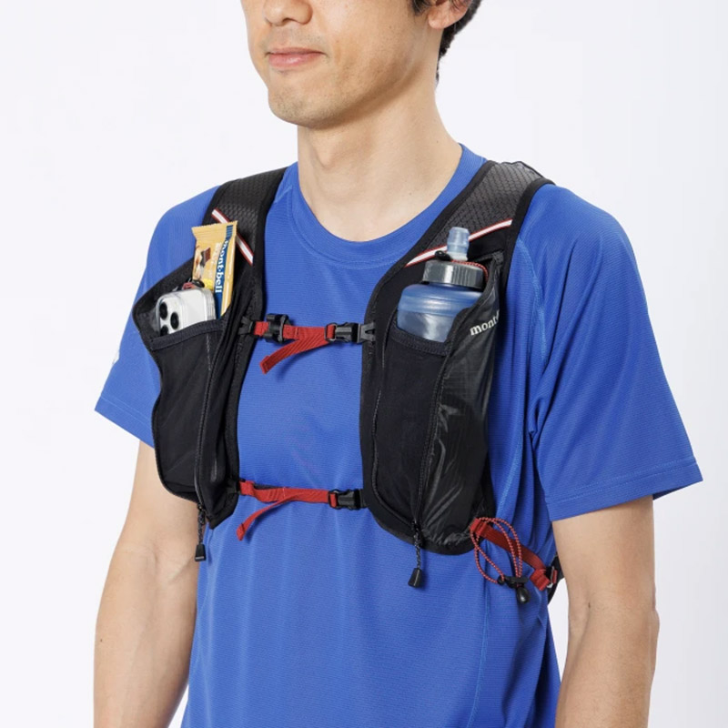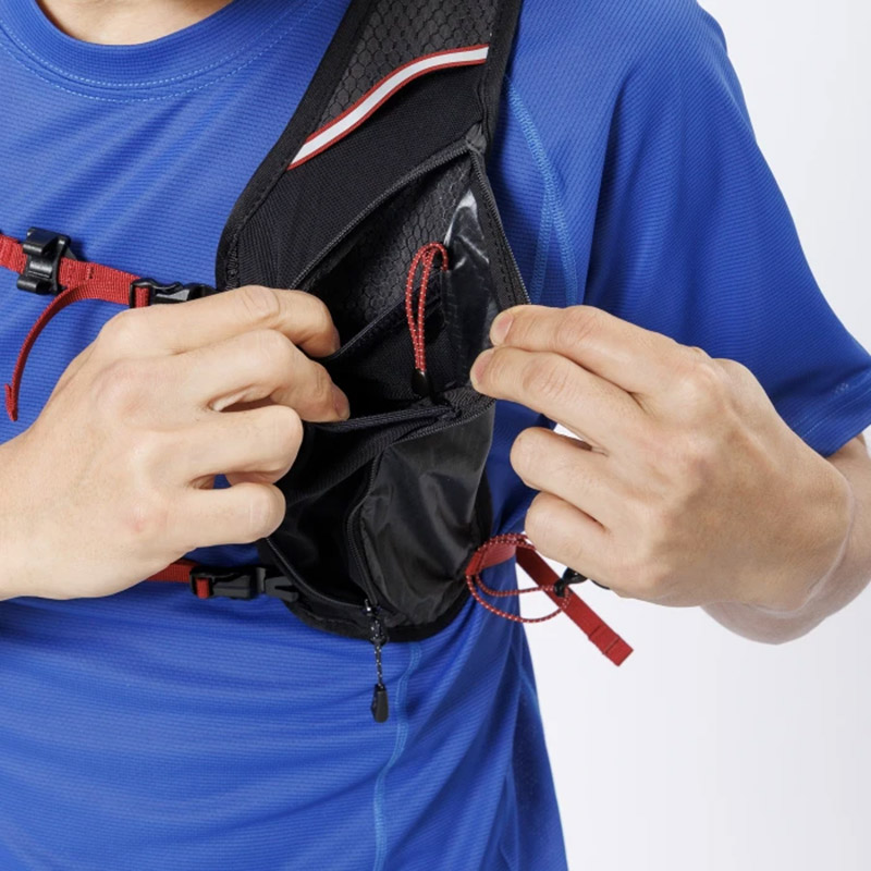 .延展式肩帶口袋,可收納最大600ml水瓶、手機等物品