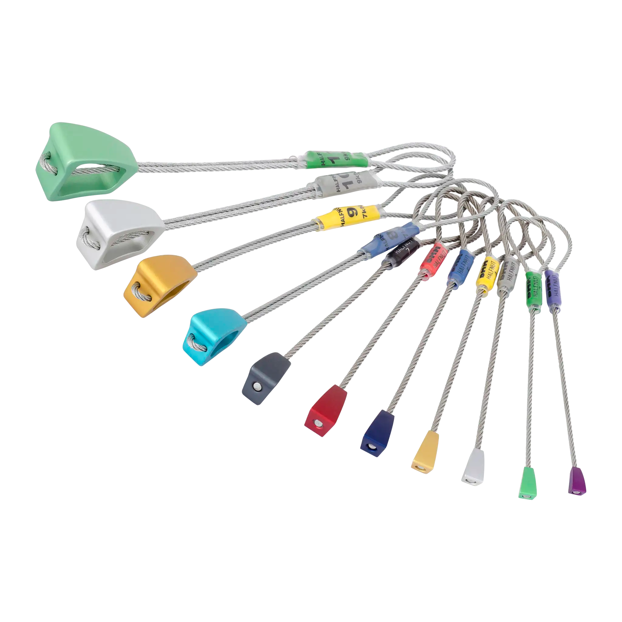 .DMM Halfnut 與 DMM Wallnut 擁有相同的錐形結構與輪廓,並採用類似的顏色編碼,較窄的寬度更適合較淺的岩縫,整組 Halfnut 的重量比 Wallnut 更輕了42%。