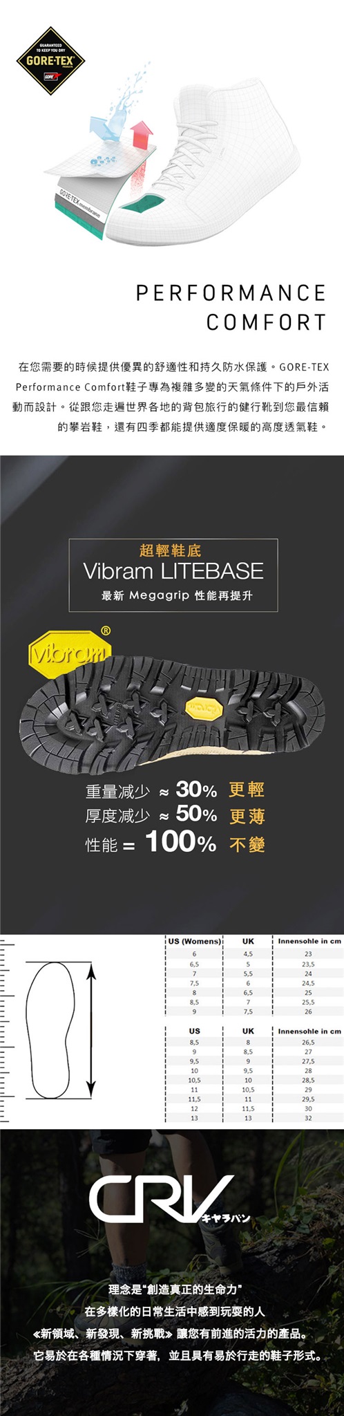 .具備優異的防水性能與抓地力,不論是健行或在嚴苛環境下活動,都能穩固支撐雙足