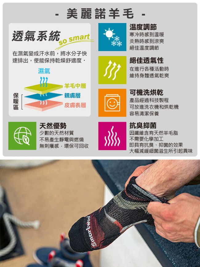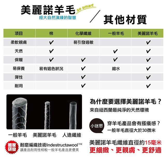 .美麗諾羊毛除了排汗、透氣、快乾,具有天然不衰退的抗菌抑臭機能