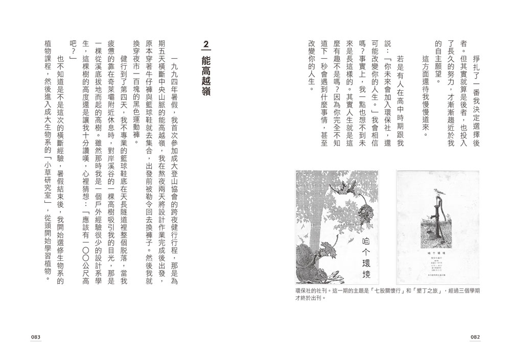 畢業後,我想趕快開始自給自足的生活,就去找了一份雜誌社的工作,這是一個報導自然與旅遊方面的出版社,叫做《大地地理雜誌》。我工作了幾個月後,覺得我比較想變成被訪問的那些生態學者,所以就辭職了。那時我的大學母校──成功大學生命科學系,開設了第一屆的博士班,於是我回到大學待過的「小草研究室」重新當學生。