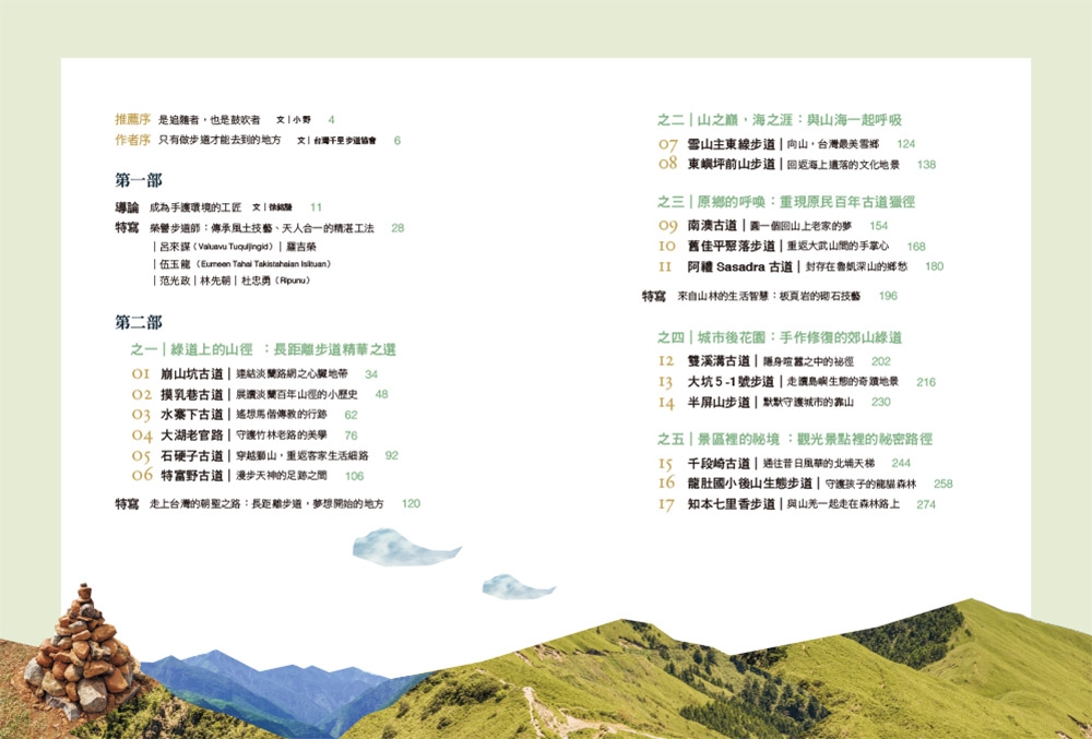 本書精選十七條步道的手作與修復過程,分享每一條步道上難得的緣分、動人的故事: