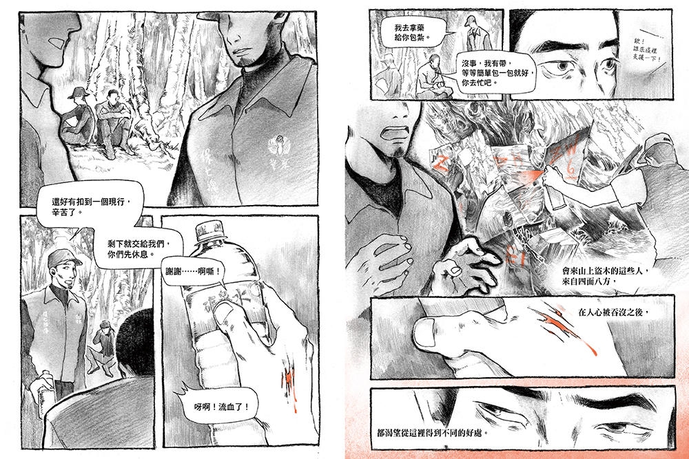 山林盜伐是社會及經濟的複合問題,近年林務局透過山村部落合作、森林產業輔導,提振山村經濟,希望從源頭到市場徹底消弭盜伐,漫畫家森森以巡山員視角及戲劇張力的手法呈現「報導者」系列報導案例,精彩且發人深省。——林華慶(林務局局長)